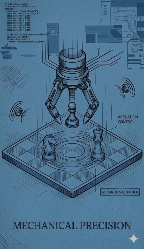 Driven by high-torque stepper motors and proprietary control logic. Chessrob features sub-millimeter positioning accuracy and a silent drive system. Every move is executed with mechanical consistency, ensuring pinpoint placement and long-term reliability.
